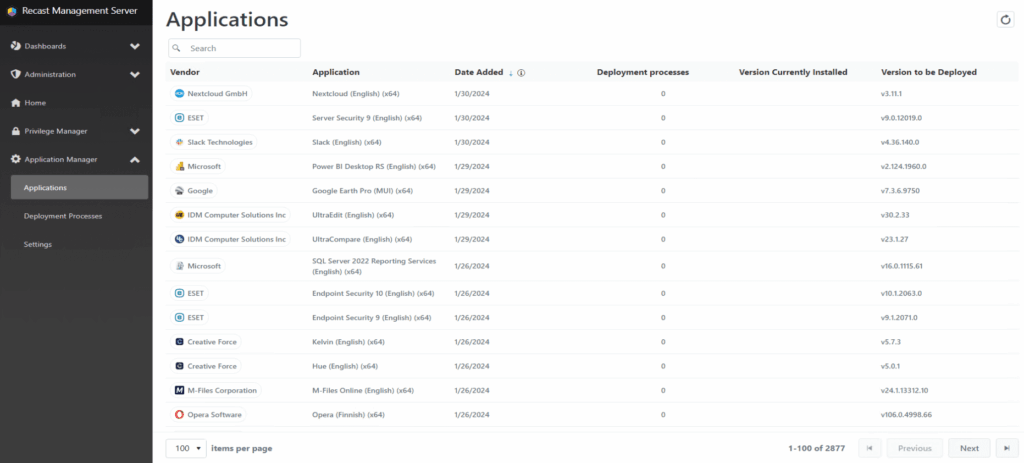 In this release, not only have we integrated Application Manager into the Recast Management Server, but we’re also unveiling the market’s largest third-party patching catalog. Now boasting over 2,500 applications, our expanded catalog ensures comprehensive coverage for every business, from small enterprises requiring key applications to large corporations seeking extensive app portfolios. This significant enhancement in our catalog underscores our dedication to leading in application management and vulnerability defense, marking a pivotal step in our ongoing journey.