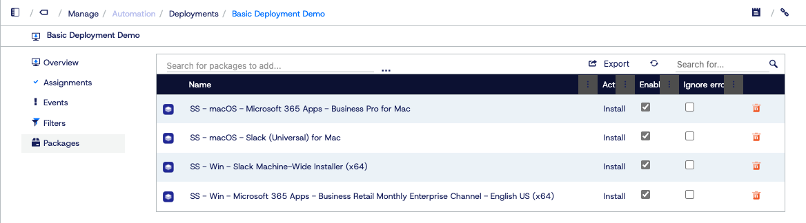 With those packages imported, I can now assign them into a deployment.
