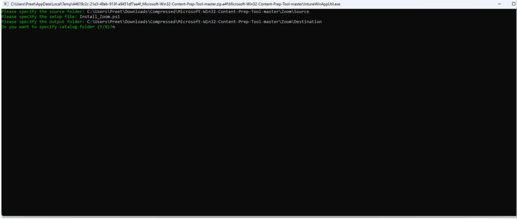 Now that you have the .ps1 script file downloaded and edited (if needed), it’s time to package it. Use the Microsoft Win32 Content Prep Tool, which you can download here.