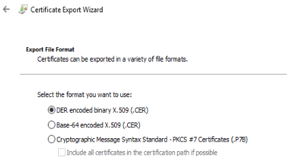 DER (.CER) is what we need.