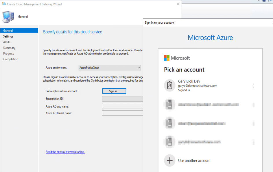 - Cloud Management Gateway (CMG) – Azure Subscription