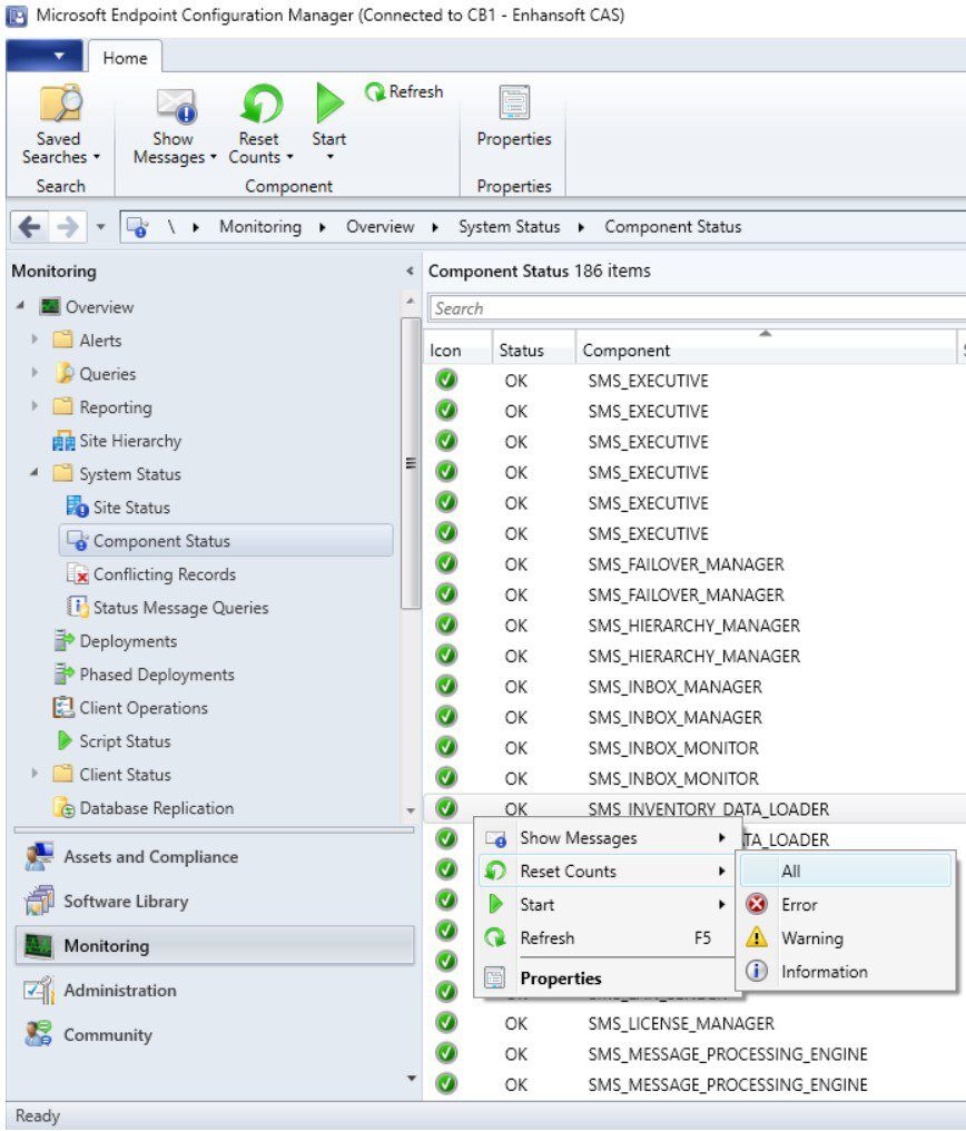 - Reset the counts for all errors and warnings for SMS_INVENTORY_DATA_LOADER.