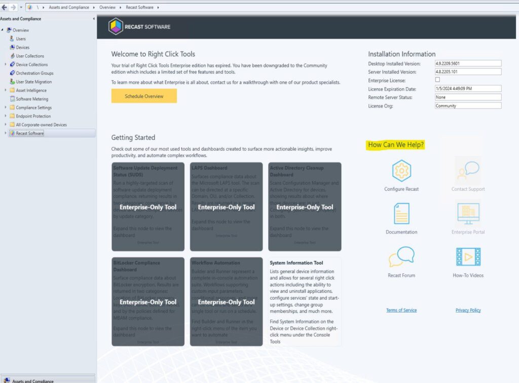 This will provide some details about what you’ve installed, including the version, and some of the other options that are available with the Enterprise license. There is also a handy “How Can We Help?” area on the right that can get you started if you run into any questions.