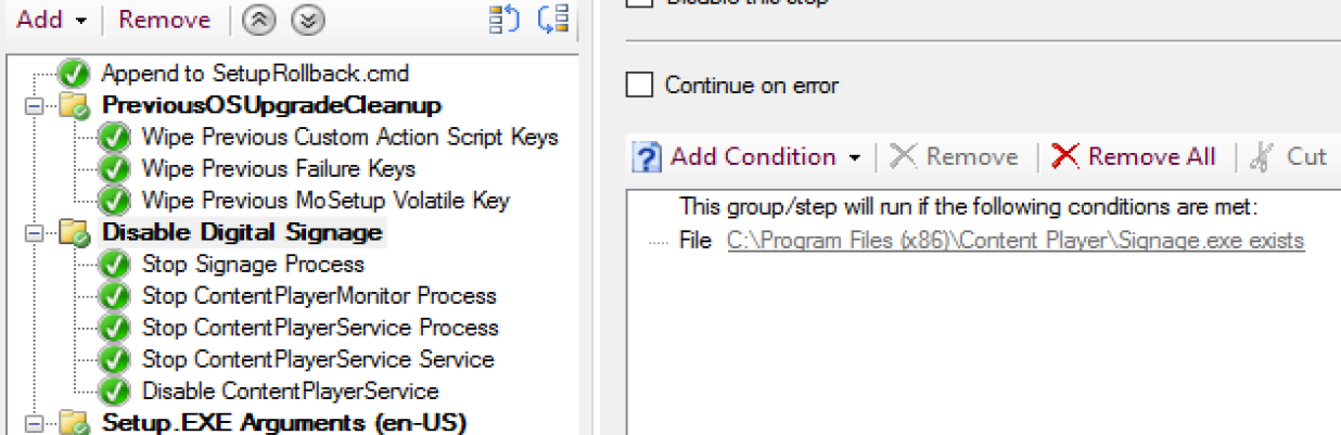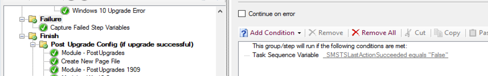 Conditions, along with variables are what allow you to have complete control over what steps run, and allows you to use the same Task Sequence for multiple functions.