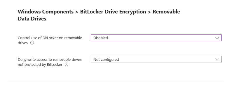 Administrative Templates: Windows Components BitLocker Drive Encryption > Removable Data Drives