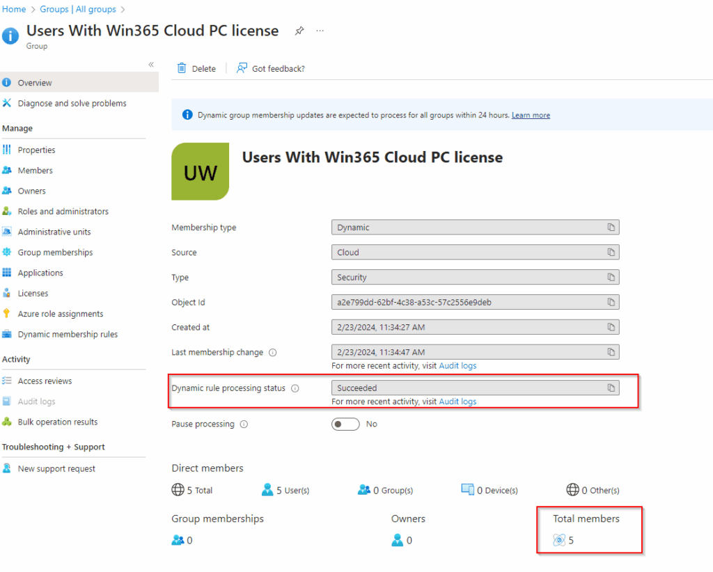 - Within minutes, Intune will process the rule and update the members.