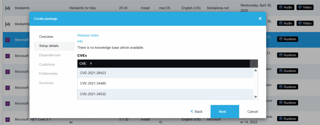 Embedding CVE data in an app-management tool lets SysAdmins check vulnerabilities without leaving the packaging or patching workspace. This is the case of Recast Software’s Application Workspace. With the Setup Store connector—Recast’s curated catalog for Windows and macOS—teams get release-note links, product pages, Recast KB articles, virus-scan scores, and any related CVE reports in one view: