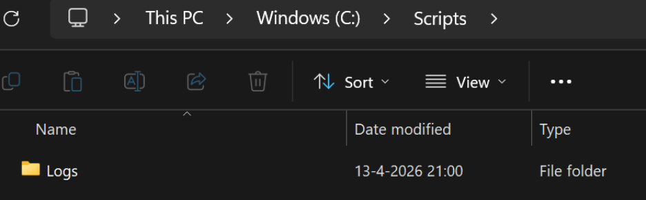 After assigning it to a test group and saving it, I started my Intune test device, and Intune created the C:\Scripts Folder with the Logs Folder inside it.