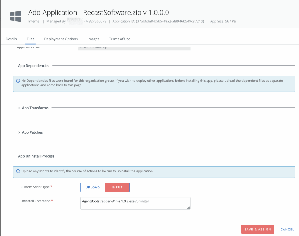 - Add the following to the Uninstall Command Line: