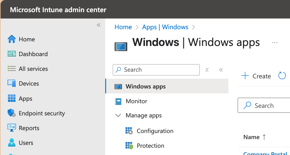 Step 10: With the .intunewin file ready, we can deploy it in Intune. So, let’s fire up our Intune engines and go to https://intune.microsoft.com/ > Apps > under Platforms click Windows > click + Create.