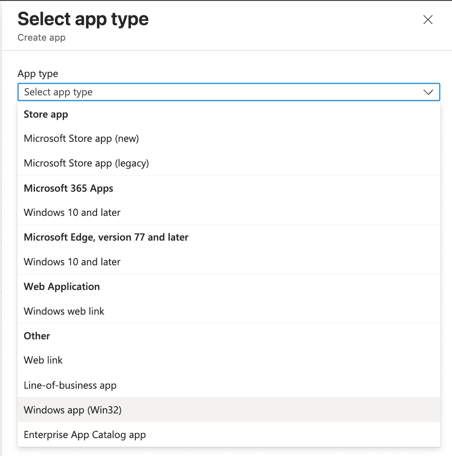 In our case today, since the application from the official website is an .exe application, we are going to need to convert it to a win32 application. If you want to learn more about that process, check out this blog.