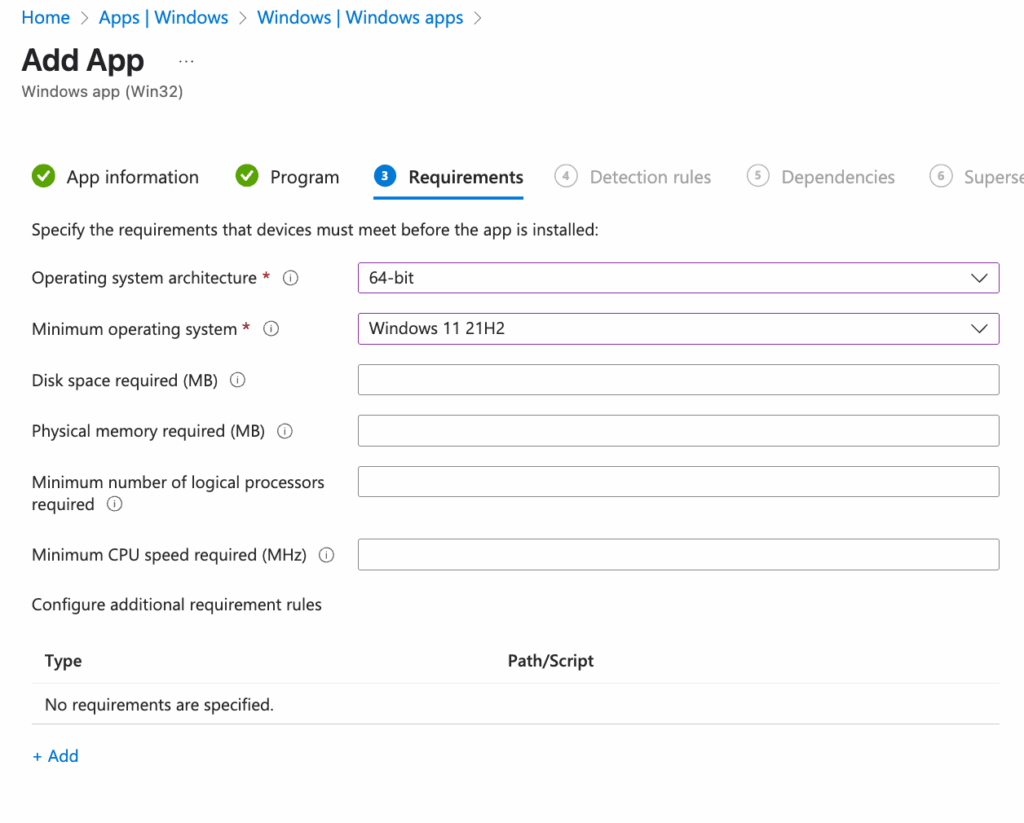 Step 16: Next is an important one, Detection rules. This will help us set rules to detect the presence of the app.