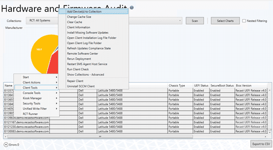 First, you will want to create a collection with the devices in question. I am going to use the Hardware and Firmware Audit dashboard in Right Click Tools to select all the Dell computers in my environment.