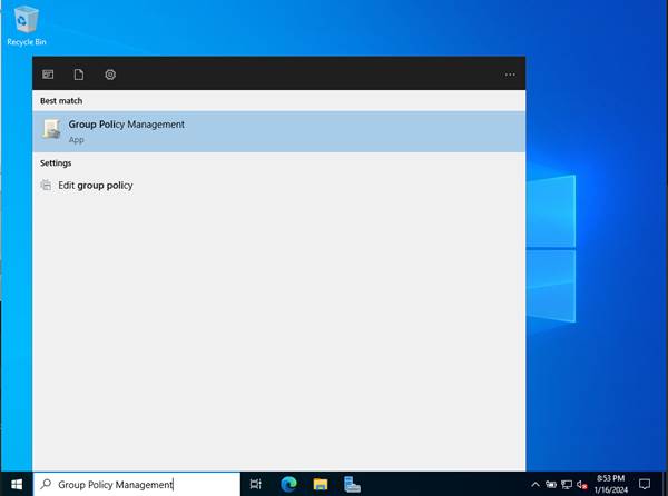 Go to your Domain Controller > Search for Group Policy Management.