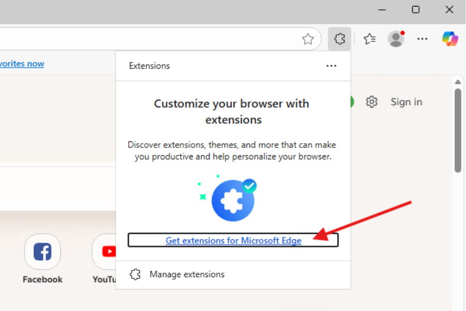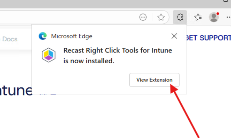 - Click Get Extensions for Microsoft Edge in the window that opens, search for Recast Right Click Tools for Intune, and click Get.
