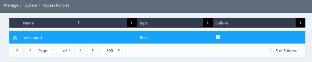- Enter ‘wksimport’ as the access policy name and click Next.