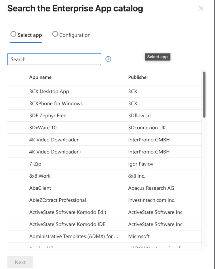 Once you select Enterprise App Catalog app, you can select the applications you want to deploy from Microsoft’s catalog.