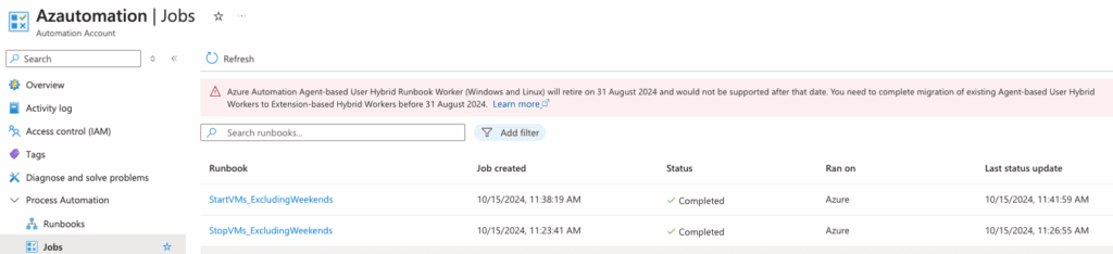 • Test and Monitor (Jobs) the Runbooks.