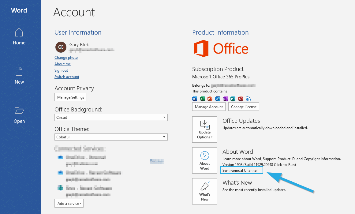 Changing the Office Channel post deployment. [MS Docs] You can check in office which channel it is by going to the Account Node in one of the office Apps.