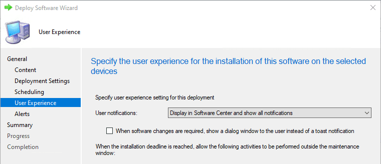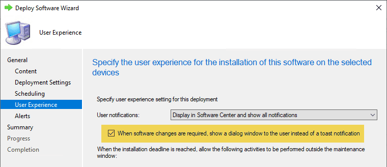 - Required Deployment – User Initiates Install Before Deadline