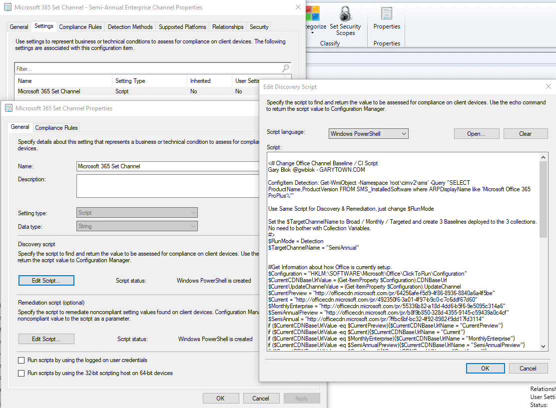 Based on that, I wrote my own script used in a ConfigItem and deployed it as a baseline to set the Channel [GitHub]