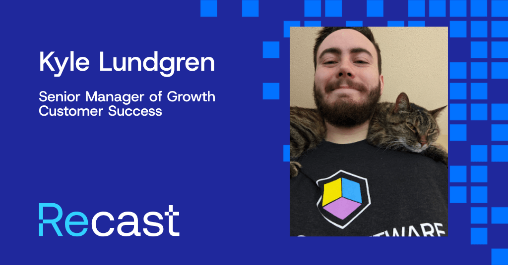 Kyle is Recast’s Senior Manager of Growth Customer Success, based just outside Minneapolis. His path here wasn’t linear, but rather relentlessly people first. A “summer cashier job” at Best Buy became an 11-year run through Geek Squad retail, corporate, systems analysis, and business operations. He discovered he loved solving messy problems, especially when the solution made someone’s day. When former colleagues joined Recast and raved about a scrappy, for-us-by-us toolmaker for sysadmins, Kyle listened and then jumped. Within a year, he was leading the team he’d helped build.