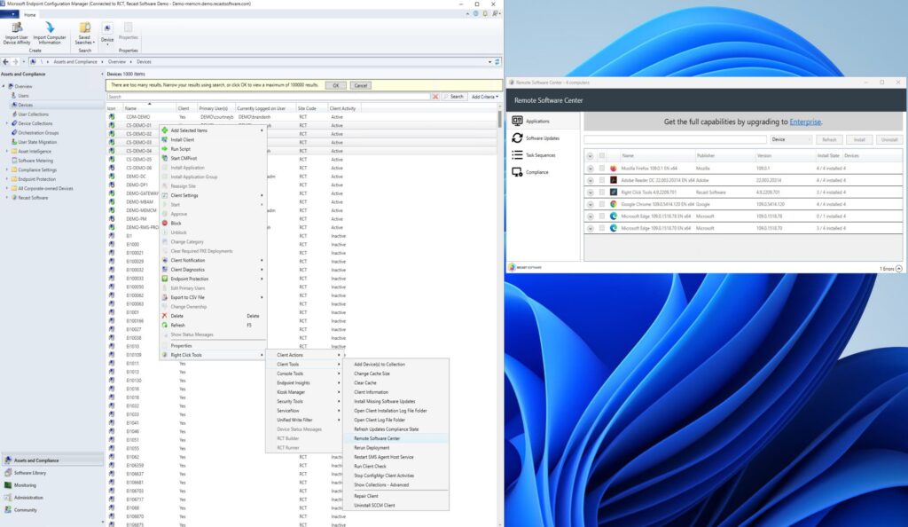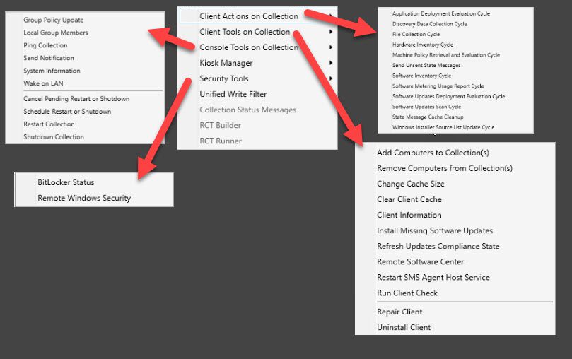 At its simplest, the Right Click Tools is a collection of individual tools or functions that allow you to take action on a single device, many devices, or entire collections, all via a right-click in ConfigMgr or Intune. Actions range from triggering client policies, application installs, or scheduling a restart of a computer. Other Console tasks include adding or removing machines from a collection, getting detailed system information, quickly launching the content location of a package, and deleting or changing the client cache.