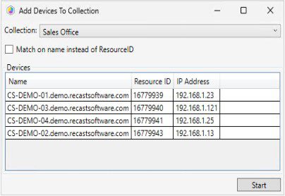 Now that they have more space, let’s add them to a collection to pull down a huge update. Run the “Add Device(s) to Collection” tool, and then select a collection to have them go into, and then show me the progress.