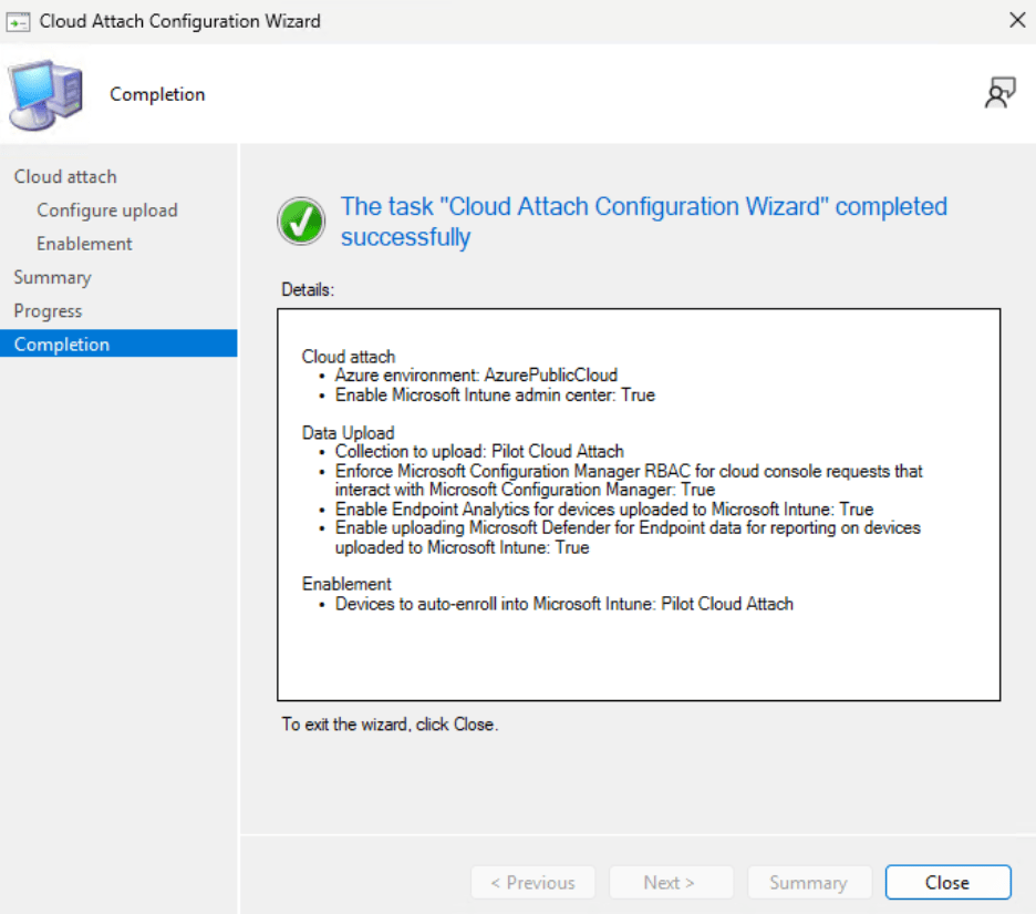 - In the window behind, you will now see the CoMgmtSettingsProd in the Cloud Attach section.