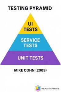 Unit tests form the base of the testing pyramid. They test small, isolated pieces of code (like individual functions or methods). Unit tests are quick to write and fast to run. They mock or stub dependencies—such as databases or APIs—so tests can control the environment and focus on behavior without real external systems.