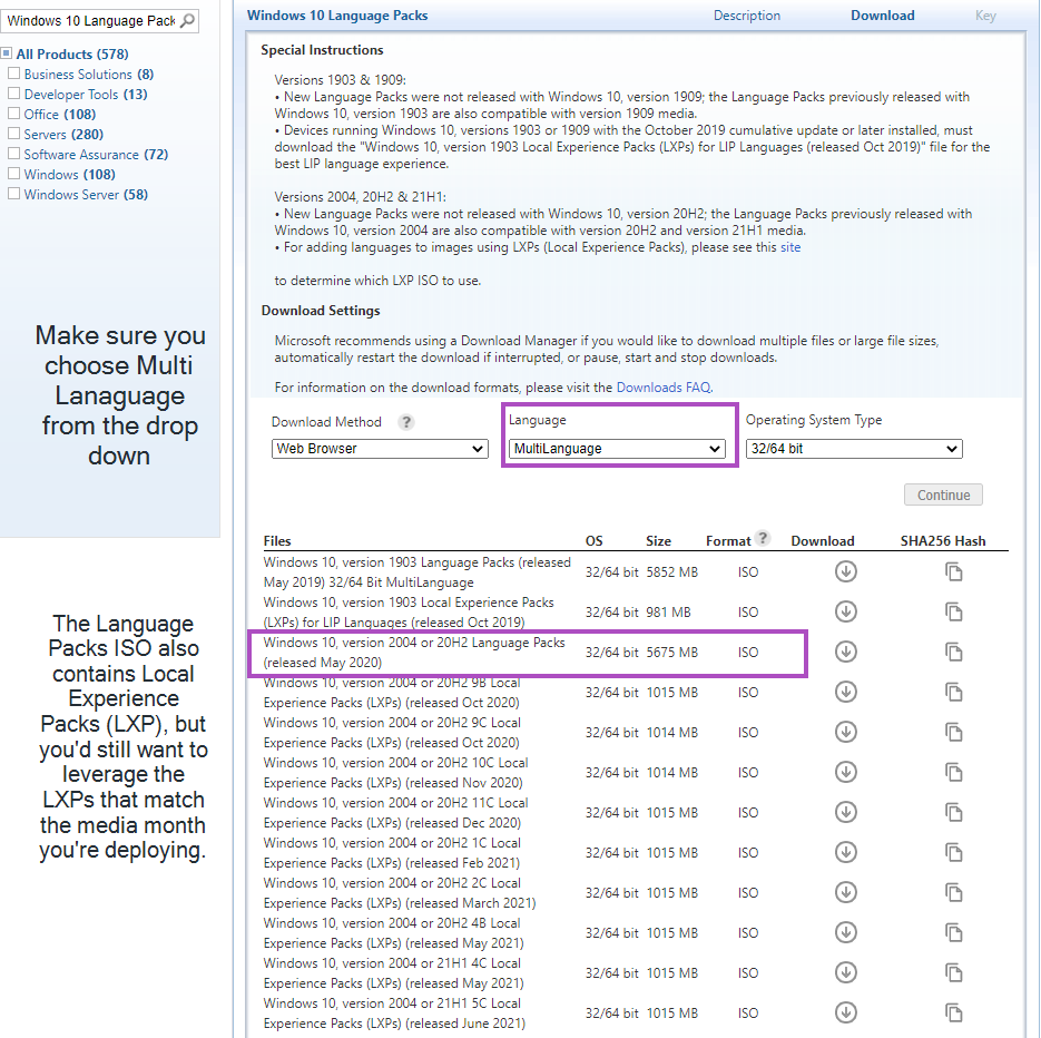 In this section, we’re going to cover a method for supporting different language packs. The Baseline Windows WIM that we deploy is en-US, and to accommodate other languages, we apply additional language packs, features on demand (FoDs), and local experience packs (LXPs) This isn’t the only method of course, but here we’re going to focus on keeping all of the language packs in ConfigMgr Packages, and making them available for Operating System Deployment (OSD) or In-place upgrades (IPU) in a task sequence.